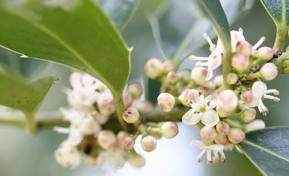 La fleur de Bach Holly provient du houx, arbuste persistant aux feuilles épineuses, symbole de protection et de vitalité. Elle est associée à l’énergie du cœur, de l’amour et de l’ouverture aux autres